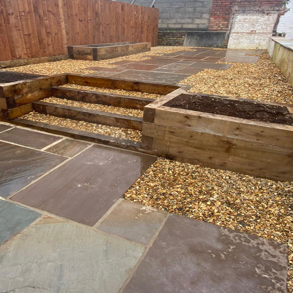 This project features brick driveway designs with circular drain covers, modern glass doors, and brick walls. The images showcase various brick driveway layouts with adjacent patios and fencing.